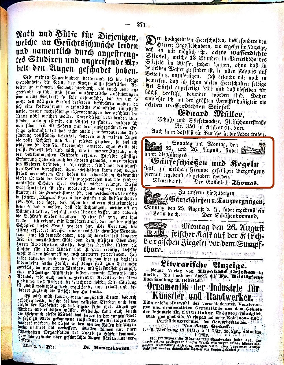 Quelle: Wochenblatt des Mansfelder Gebirgskreises 1847, 1848 und 1861